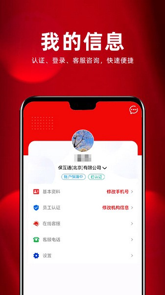 1、在本站下载并安装保互通app,在“我的”个人信息界面选择点击“员工认证”功能选项。