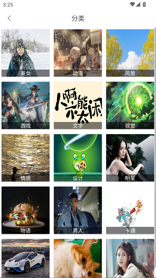 3、点击分类能查看动漫、风景等类型进行操作