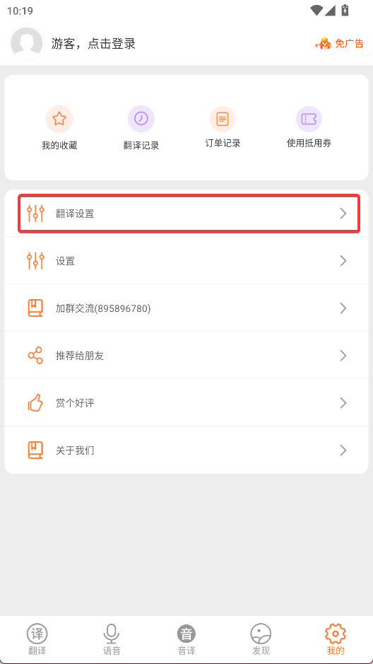 2、选择“翻译设置”