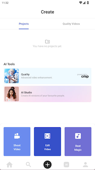 1、打开Funimate应用后,点击底部导航栏的+图标