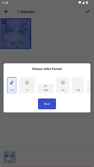 3、导入图片或视频作为素材,并选择视频比例