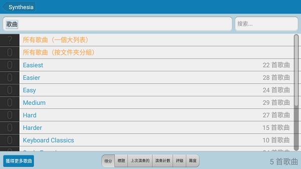 1、下载安装好Synthesia手机版,进入软件主页面,点击演奏歌曲。
