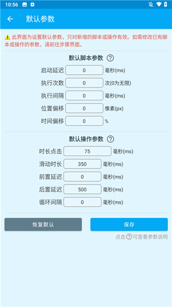 执行间隔:控制点击/滑动动作的间隔时间(0.1秒至60秒)。