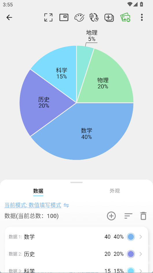 A1:可以。快制图表内置表格编辑功能,可直接新建数据表,按行列录入分类与数值。