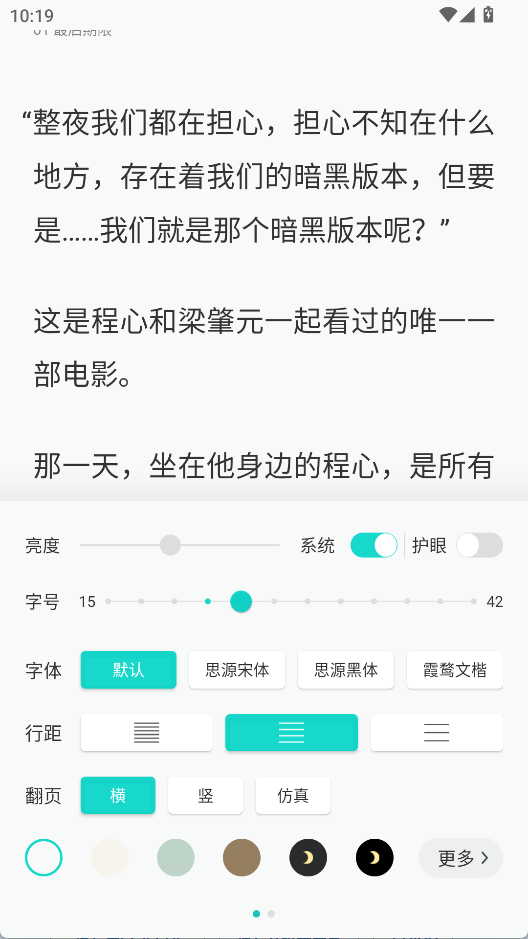 4、可根据阅读喜好,自由调整字号、亮度、配色及翻页方式,个性化适配。