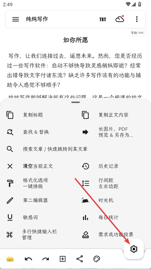 1、打开纯纯写作app,点击右上角的三点按钮