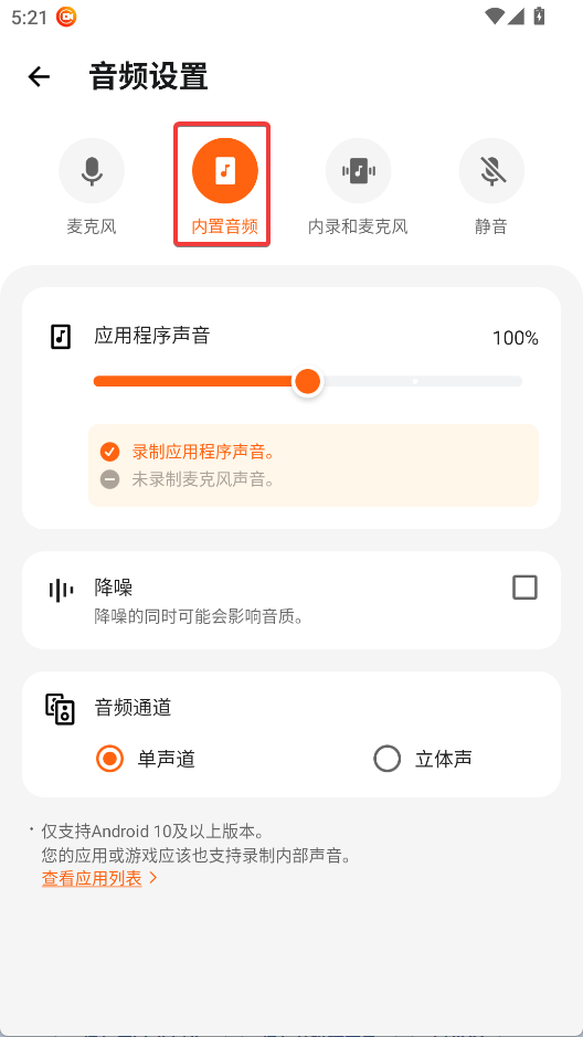3、选择内置音频即可录制内部声音
