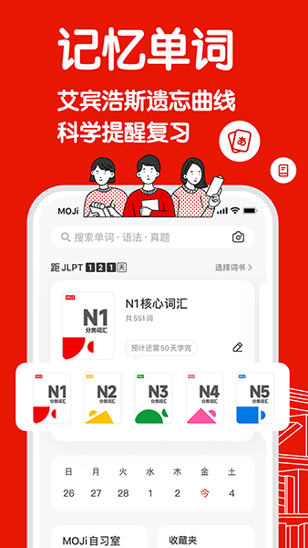 ● 打卡日历 - 实时记录累计学词量、学习天数、学习时长,学习进度了如指掌。坚持打卡还能获得Moji独有勋章喔!