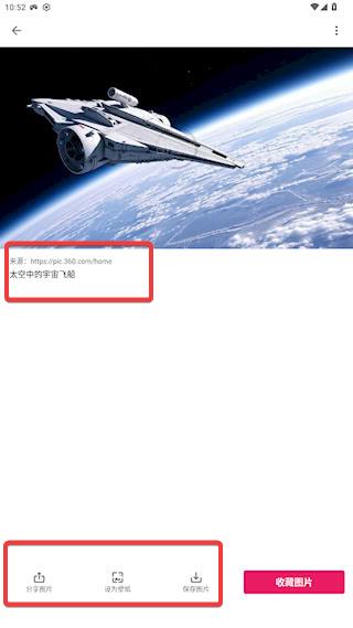 3、图片下方可以看到图片来源,支持一键保存和使用。