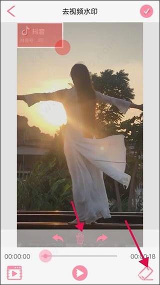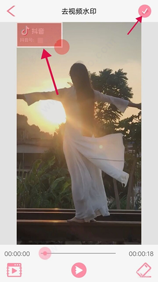 4、在视频有水印的地方画一个选区,点击 “√” 按钮去水印。
