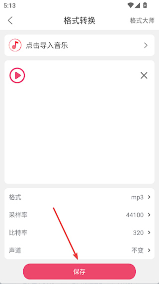 3、设置格式、采样率、比特率,点击保存