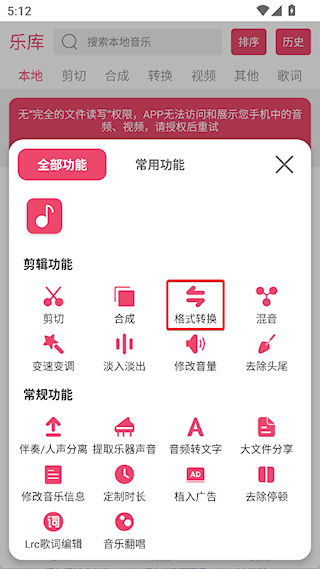 2、在功能列表里选择格式转换