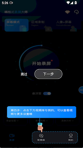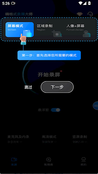 1、打开嗨格式录屏大师app,在上方选择录屏模式