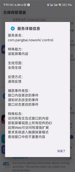 3、通过更深层的系统集成,旨在提供比普通应用更稳定的无障碍服务运行环境。