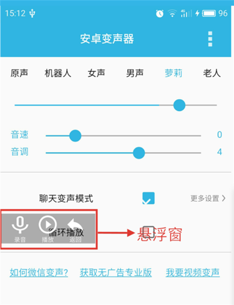 1、打开安卓变声器APP,在主界面找到并点击聊天变声模式,点击后屏幕将出现悬浮窗。