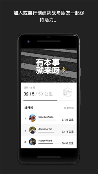 在距离排行榜上,与朋友和跑步同伴轻松一较高下。