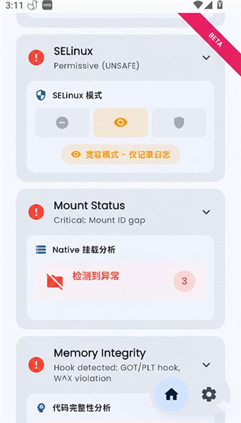 不仅扫描常规的su二进制文件,还会深入检测 busybox、Magisk 残留项及系统分区(如 /system、/vendor)的异常挂载状态,让基础 Root 无所遁形。
