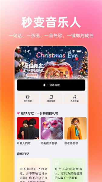 1、一键写歌:文字、图片皆可被创作成旋律与歌词,创作前所未有地简单