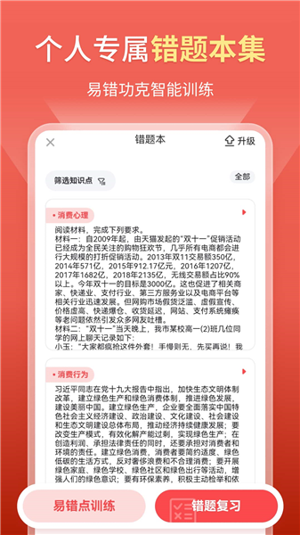 2、智能工具辅助,教辅专区,全科知识点高清使用,错题本、笔记本,合理智能归类每一次做题记录,搭配每一组章节答题,分配更智能!