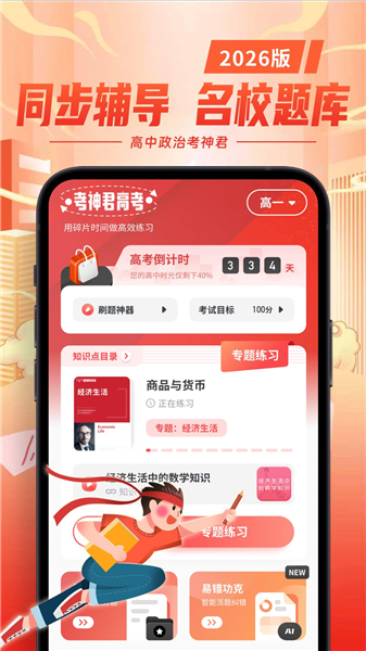 考神君高中政治是专为高中生提供政治科目教学服务的一款学习类软件,这里收录了课堂中海量的知识点,用户在软件上就可以直接进行学习,非常方便,并且每个知识点都会有专业的解析,帮助用户进一步理解知识。同时用户在这里刷题,参加模拟考试,检测平时的学习成果,针对错题应用会自动记录,方便用时快速了解哪方面的不足,提高学习效率。