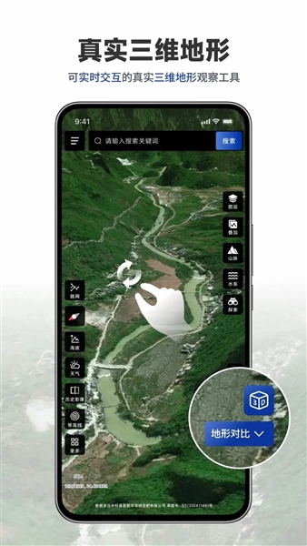 三维山水全景地图是由重庆新知空间科技有限公司推出的一款十分实用的3D地图工具软件。软件能够根据实际地点地貌为用户生成真实的三维地图模型,用户就可以在手机上直观地查看山脉走向、地形样貌等。同时,用户还可通过软件查询相关地点的历史地貌变迁历史,以更好地体会地理变化的神奇之处。另外,软件还为用户提供了多种测量工具。有需要的朋友们快来下载吧!