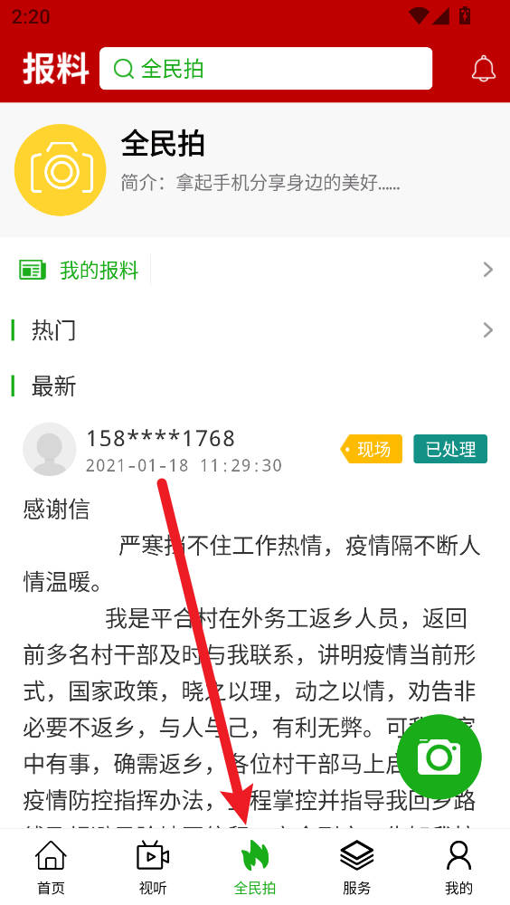 3、点击全民拍上传身边精彩事件。