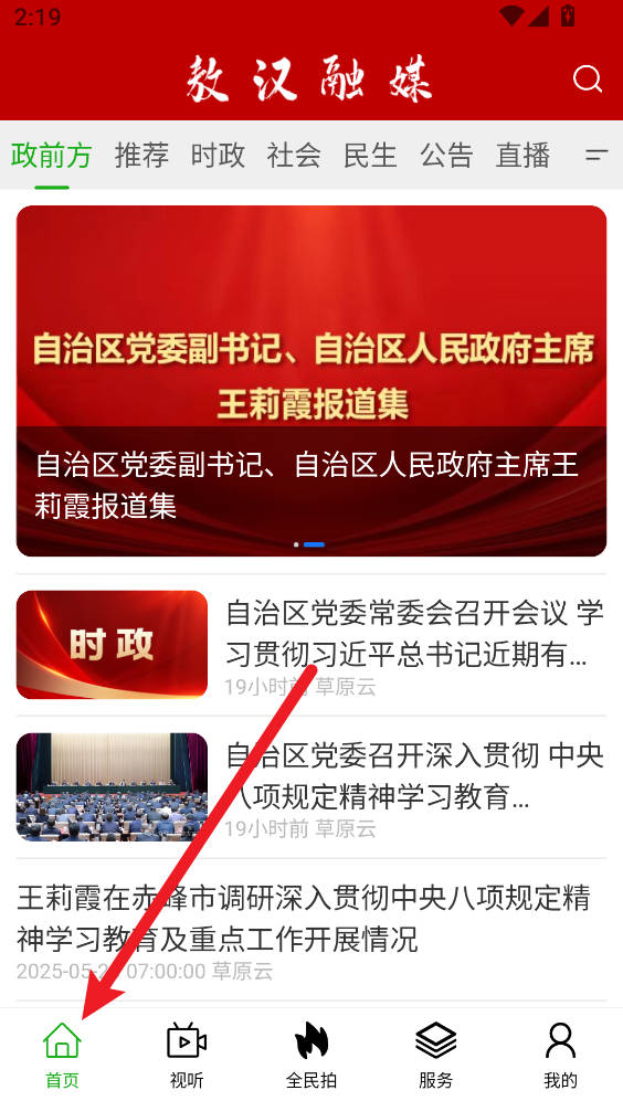 1、点击底部首页查看推荐新闻与政府动态。
