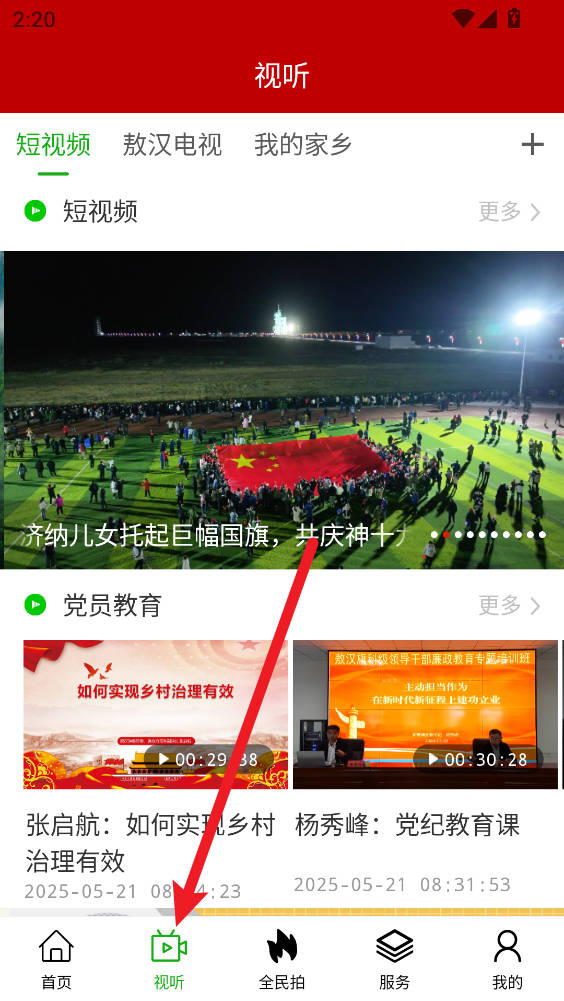 2、点击视听浏览短视频与本地电视内容。