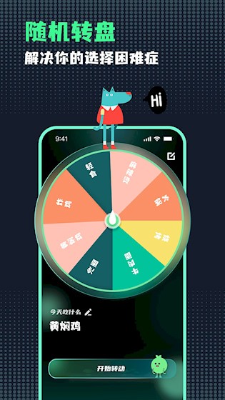 1、 日常饮食选择:晚上吃什么、周末去哪聚餐,转动转盘快速决定。
