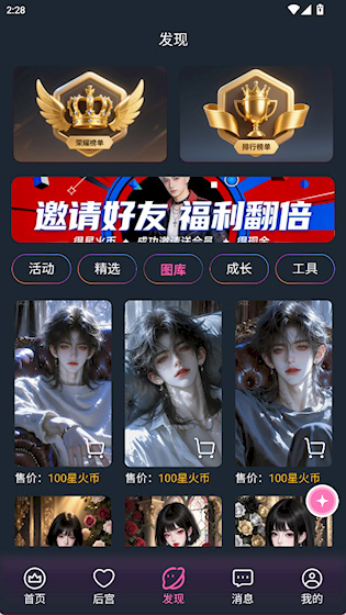 2、发现界面有丰富的图库、 活动等内容