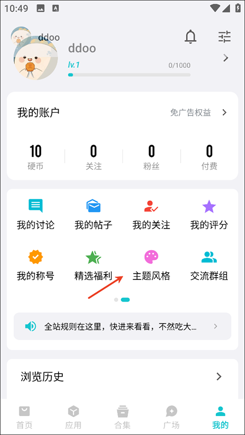 4、登录后可切换主题优化观看体验,进入“我的”页面点击“主题风格”,有6种配色方案可选。