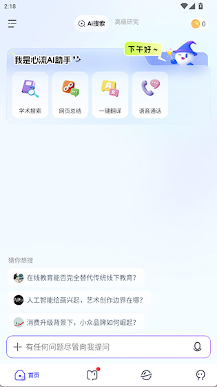 1、首页提供学术搜索、网页总结等功能