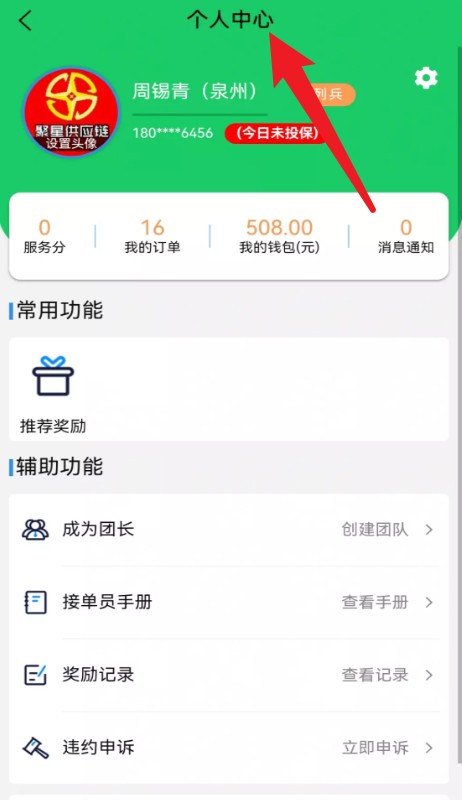 5、点击右上角个人中心可查看钱包、订单与推荐奖励。
