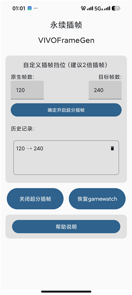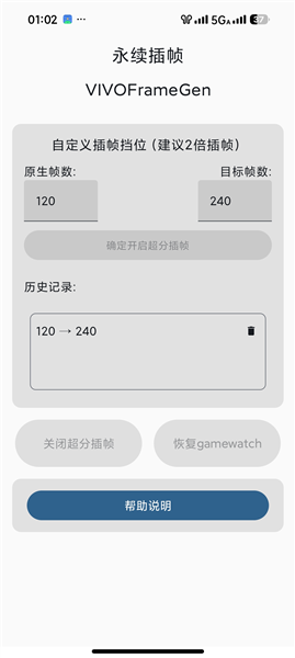1.支持自定义设置插帧参数,包括帧率或优化功耗等