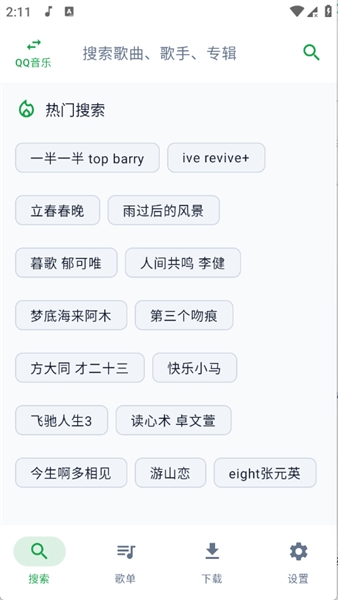 强大的智能搜索功能,不仅能快速精准匹配目标歌曲,还会同步展示相关专辑、歌手资料与热门作品,并智能推荐相似风格歌曲,让你在找歌的同时,轻松发现更多符合口味的宝藏音乐。