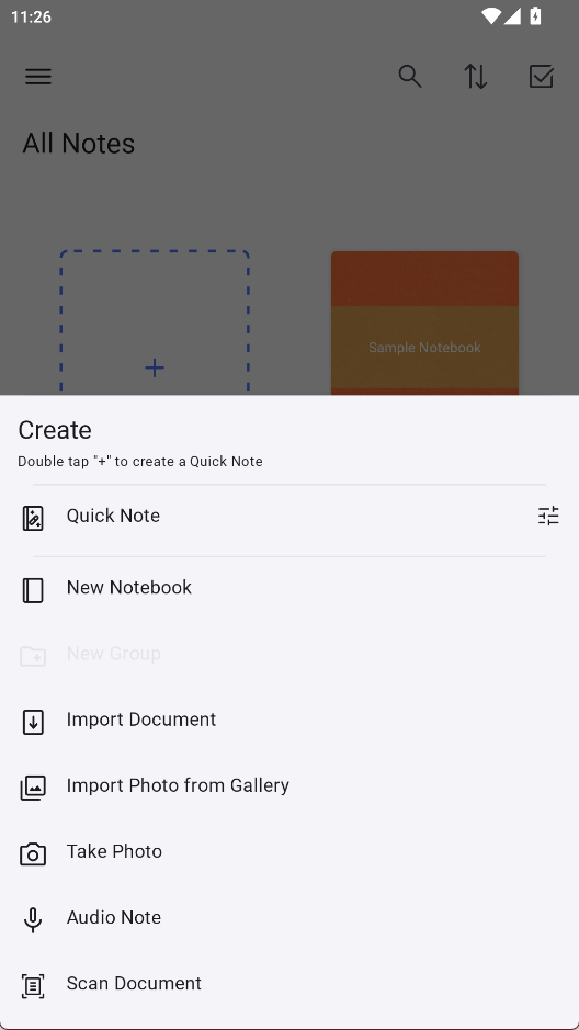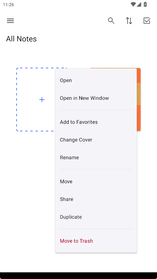 1、首页可以看到所有笔记,长按笔记进行操作