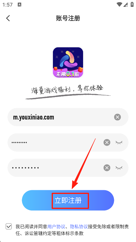 3、在登录页面选择「没有账号,立即注册」,跳转至注册填写界面。