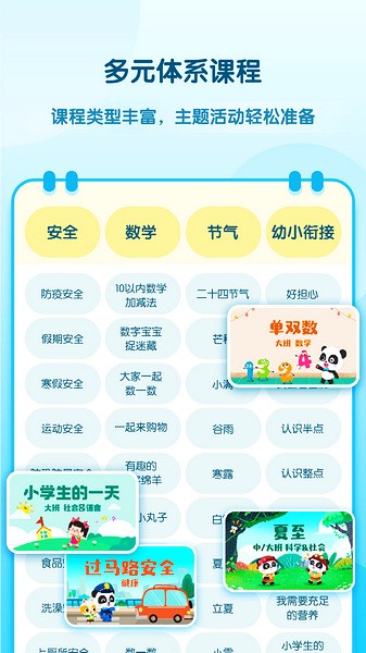 课件涵盖五大领域及数十个常用主题,配套精美PPT、教案文档、音视频及纸面教具等丰富素材。