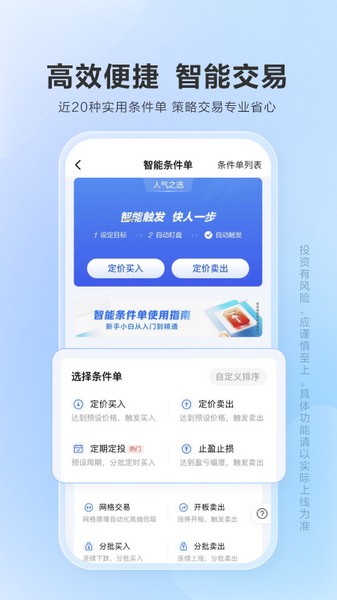 1、【投顾组合智能调仓】智能推送个性化调仓指令,支持一键跟单,交易省心自主。