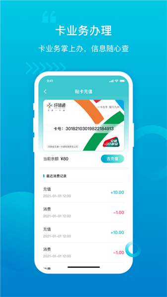 在应用中就能实现卡业务办理,并能便捷充值,无需到线下;