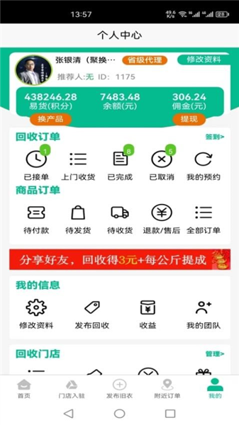 能够通过平台查询回收订单,可以掌握自己在平台的各种回收数据;