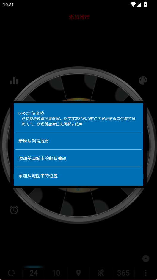 1、打开应用后,点击从城市列表新增,选择所在的城市