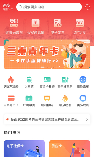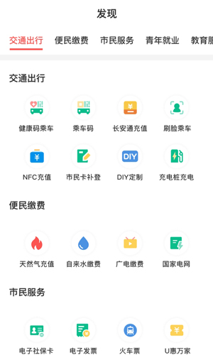 提供交通服务、公共缴费、金融、教育等相关的服务入口,覆 盖刷码(脸)乘车、实名账户充值、天然气充值、热力缴费、教育艺考 成绩查询等各种民生场景;