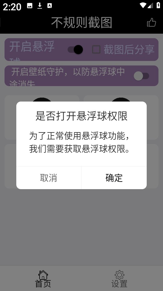 4、悬浮球功能,开启后可在不同页面快速调用,截图操作更快捷。