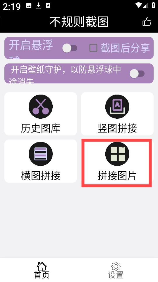 2、进入首页后,找到并点击页面中的拼接图片选项。
