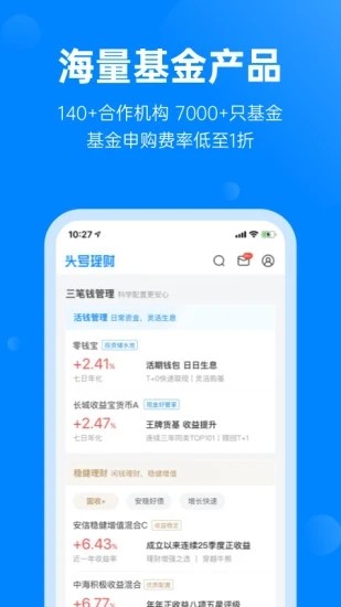 产品丰富:140+合作机构,7000+只基金,申购费率低至1折;