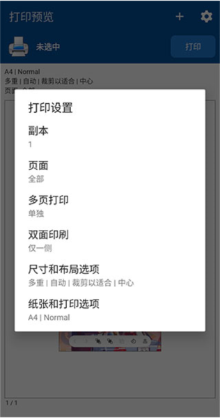 3、点击右上角的齿轮按钮可对打印文件进行设置