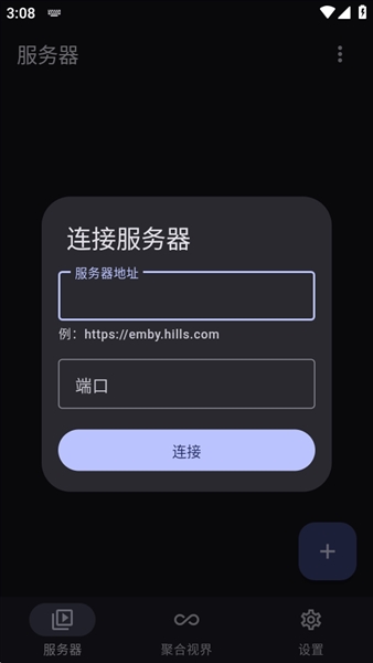 3.在其中输入Emby服务器地址,并设置好端口;