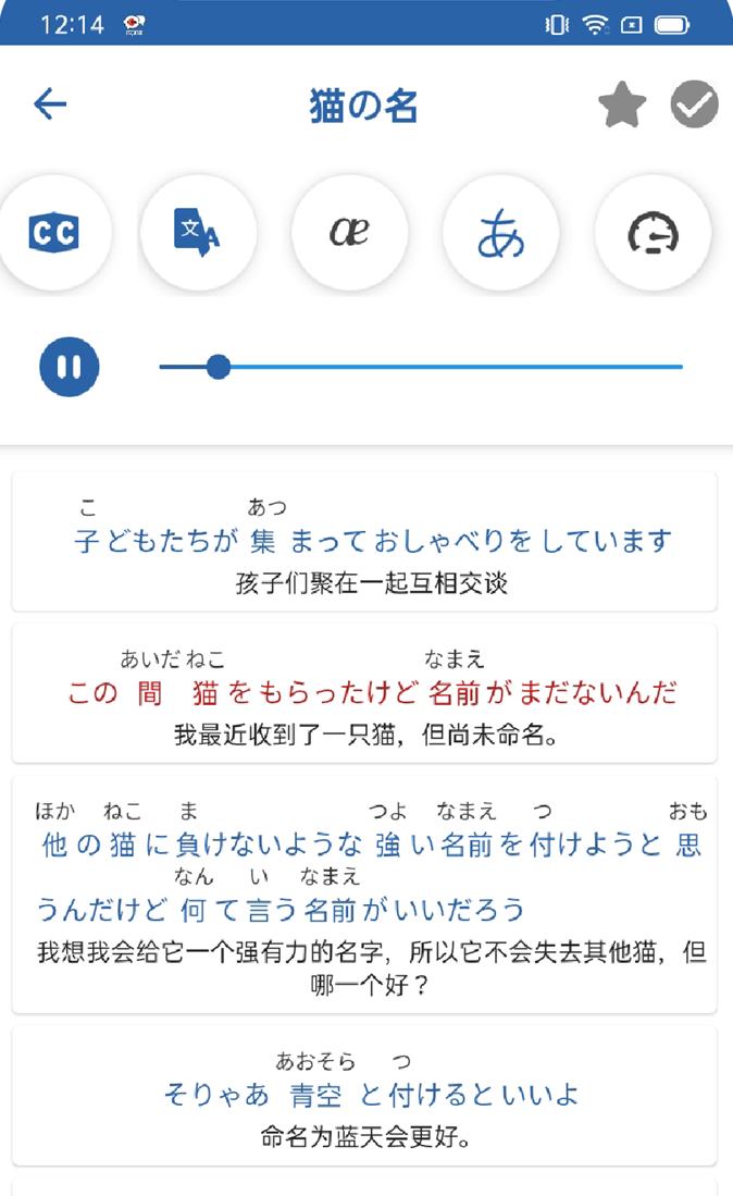 3、可自由显示或隐藏拼音、翻译,切换学习模式,加深对内容的记忆与理解。