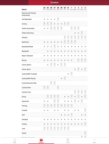 2、东京奥运会比赛日程